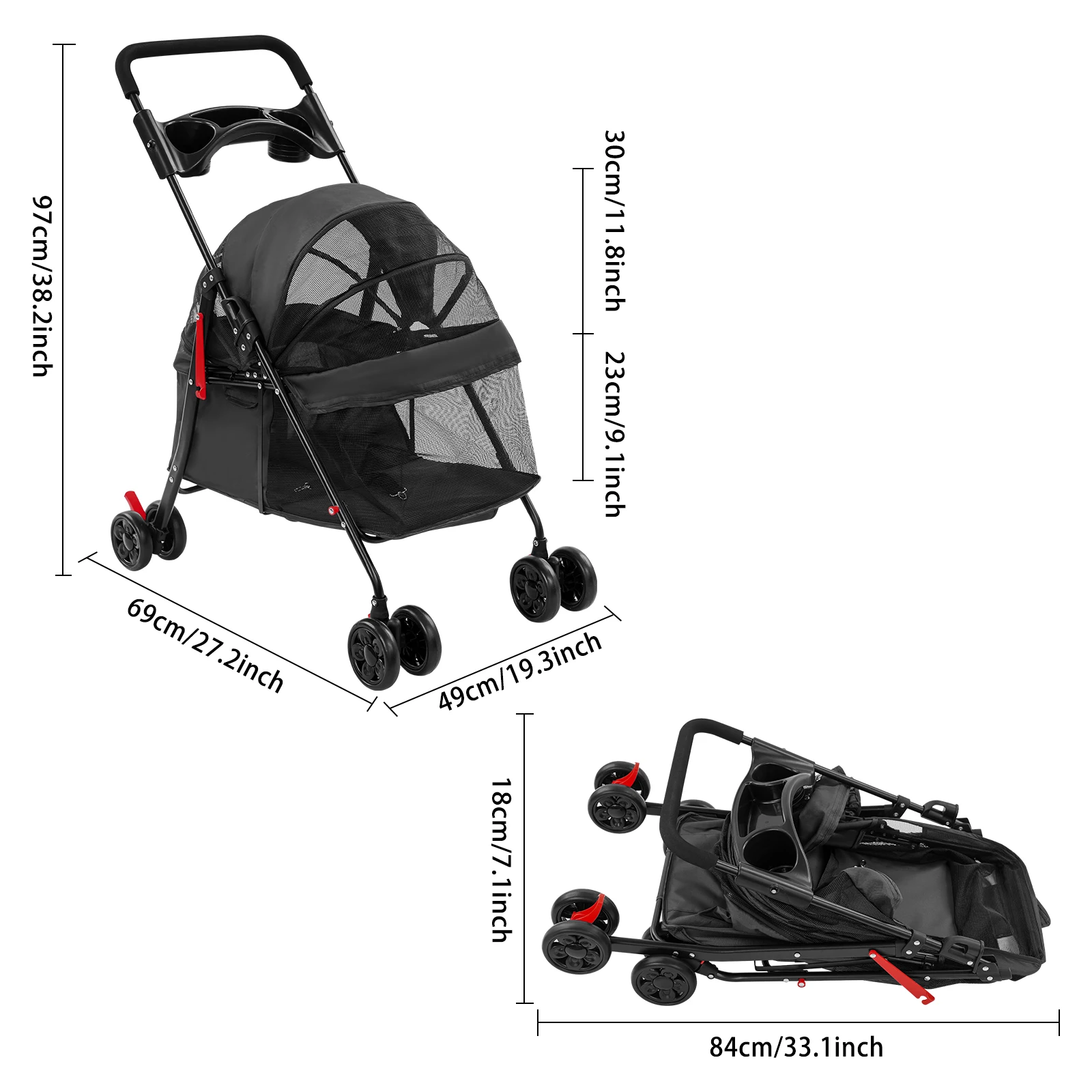 Foldable Pet Stroller Dogs Travel